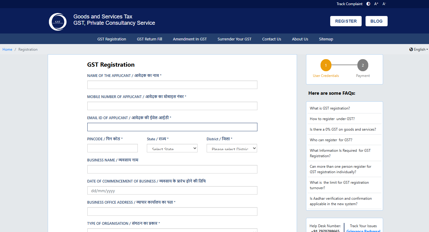 Visit the GST Register portal and select GST Registration